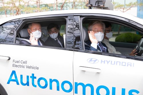 이 후보는 앞서 2021년 경기도지사 시절에는 경기 화성시 현대차·기아기술연구소를 찾아 정의선 현대차그룹 회장과 함께 수소버스와 자율주행차를 함께 탔다.