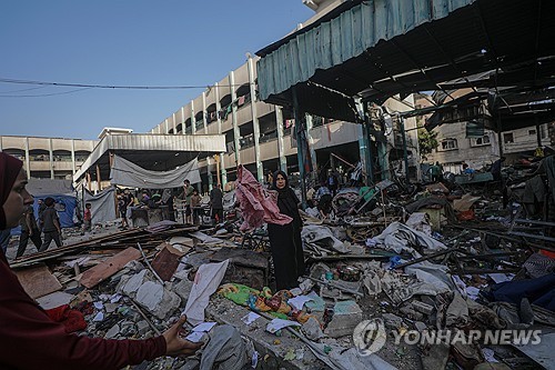 지난달 25일에도 가자지구 북부 다라즈 지역에 있는 파미알제르자위 학교 단지가 공습당해 최소 54명이 목숨을 잃었다.