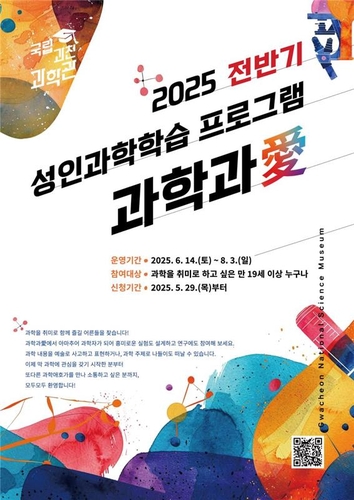 [게시판] 과천과학관, 성인 과학학습 프로그램 '과학과애' 운영▲ 국립과천과학관은 14일부터 성인 과학학습 프로그램 '2025 과학과애'를 운영한다. 올해는 기획 단계부터 과학소통가, 연구자 등 과학 기반 전문가들과 협업하는 프로그램들이 운영된다. 자세한 내용은 과천과학관 홈페이지에서 보면 된다. (서울=연합뉴스)(끝)<저작권자(c) 연합뉴스, 무단 전재-재배포, AI 학습 및 활용 금지>