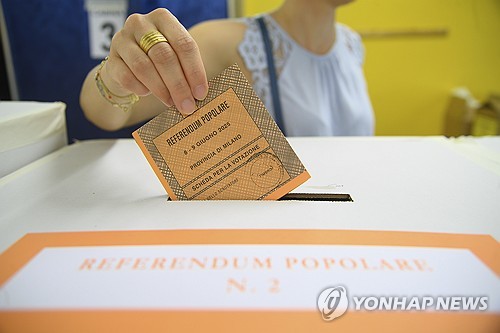 9일(현지시간) 안사(ANSA) 통신에 따르면 전날 오전 7시부터 이날 오후 3시까지 이틀간 국민투표의 최종 투표율은 약 29%로 잠정 집계됐다. 투표율이 국민투표 결과가 법적 구속력을 갖기 위한 요건인 50%에 크게 못 미쳤다.