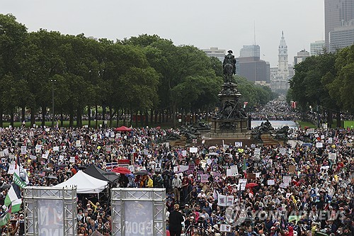 미국 독립 혁명의 상징 도시인 필라델피아에 10만명, 뉴욕에서는 5만명이 각각 시위에 참가하는 등 전국 2천여곳에서 '반(反)트럼프' 목소리가 울려퍼졌다.