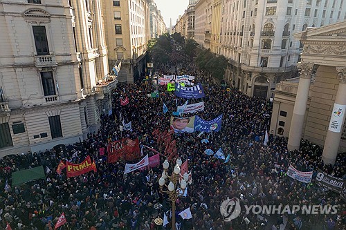 이날 집회에는 아르헨티나 최대 노동계 연합인 전국노동자총연맹(CGT)을 비롯해 대학생, 은퇴자, 주부 등 각계각층에서 참여했는데, 주최측은 참가자가 최대 100만명에 이른다고 주장했다고 일간 클라린은 전했다.