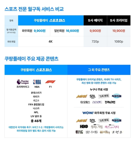 쿠팡플레이 관계자는 "스포츠 패스 일반 회원 요금제 출시로 더 많은 고객이 쿠팡플레이의 모든 스포츠 콘텐츠를 무제한으로 즐길 수 있게 됐다"며 "앞으로도 중계 콘텐츠 확대는 물론 시청 환경과 제품 경험 강화를 위한 혁신을 지속해 나갈 것"이라고 말했다.