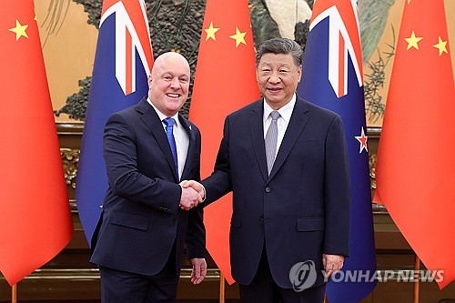 (베이징=연합뉴스) 정성조 특파원 = 시진핑 중국 국가주석이 20일 중국을 방문한 크리스토퍼 럭슨 뉴질랜드 총리를 만나 양국 협력 강화와 다자 무역 체계 수호 등에 관해 의견을 나눴다.