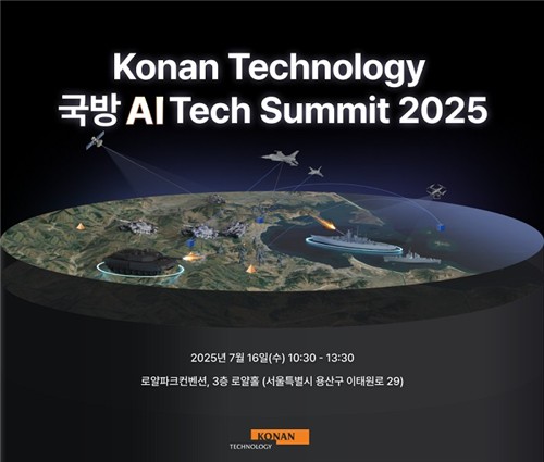 (서울=연합뉴스) 조성미 기자 = 인공지능(AI) 소프트웨어 기업 코난테크놀로지[402030]가 다음 달 16일 서울 용산구 전쟁기념관 로얄파크 컨벤션에서 '국방 AI 테크 서밋 2025'를 연다고 23일 밝혔다.