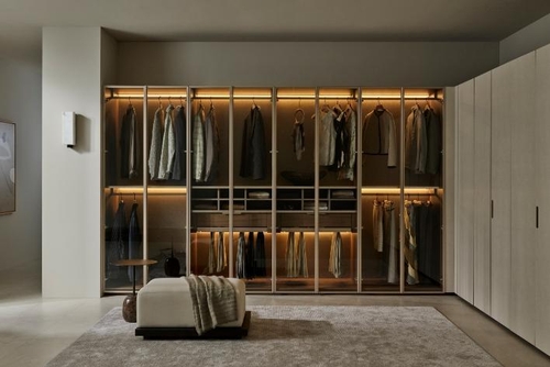 ▲ 한샘은 수납가구 시그니처 붙박이장의 신규 도어 2종을 출시했다. 붙박이장은 94종의 내부 구성을 갖춘 한샘의 대표 수납 시스템으로 개인화된 소비자의 취향과 욕구를 반영해 내부 칸막이 위치를 1㎜까지 조정할 수 있다. 새롭게 선보이는 도어는 벽체처럼 어우러지는 패브릭 패턴의 'S5 리노아 도어'와 투명 유리를 활용한 '글래스 도어'다.