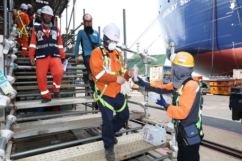(서울=연합뉴스) 홍규빈 기자 = 한화오션은 냉방 버스를 운영하고 휴식 시간을 늘리는 등 폭염 대책을 강화했다고 10일 밝혔다.