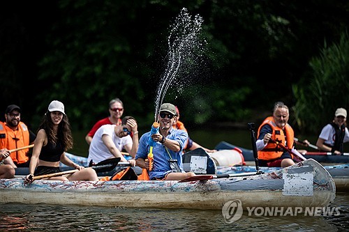 17일(현지시간) 로이터 통신에 따르면 헝가리의 친유럽·중도주의 성향 야당 티서(Tisza)의 머저르 페테르(44) 대표가 내년 총선을 앞두고 카누를 타고 전국 순회에 나섰다.