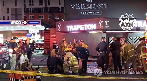 (로스앤젤레스=연합뉴스) 임미나 특파원 = 19일 새벽(현지시간) 미국 로스앤젤레스(LA) 할리우드 지역에서 발생한 차량 돌진 사건과 관련해 가해 차량 운전자가 총격을 받은 것으로 확인됐다.
