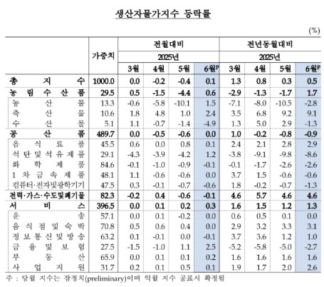 이어 "7월 들어 폭염과 폭우로 농림수산품 가격 불확실성이 커진 상황"이라며 "6월에 상승했던 국제 유가가 시차를 두고 7월 생산자물가에도 일부 영향을 줄 수 있다"고 예상했다.