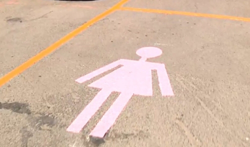 시가 마련한 여성 전용 주차 공간엔 치마를 입은 여성이 분홍색으로 그려져 있다.