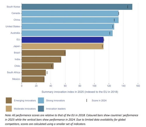 30일 과학기술정보통신부와 한국과학기술기획평가원(KISTEP)에 따르면 유럽연합 집행위원회(EC)는 EU 회원국과 인접 유럽국, 글로벌 주요 경쟁국의 혁신 성과를 비교 분석한 '유럽 혁신 스코어보드(EIS) 2025'를 최근 발표했다.