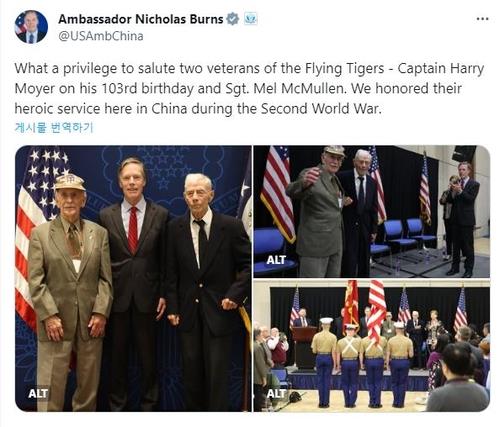 보도에 따르면 중국 측은 내달 2∼3일 베이징에서 열릴 항일 승전, 제2차 세계대전 종전 80주년 기념식에 플라잉 타이거스를 지휘했던 클레어 리 체널트의 딸과 손녀를 포함해 관련 후손을 대거 초청했다.