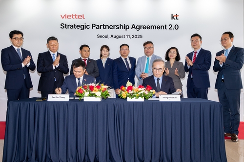 (서울=연합뉴스) 박형빈 기자 = KT[030200]는 베트남 국영기업 비엣텔 그룹과 '전략적 파트너십 2.0'을 체결하고 베트남 국가 인공지능(AI) 전략 수립 및 산업계 AX(AI 전환) 확산에 나선다고 12일 밝혔다.