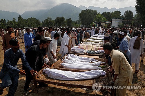또 전날 홍수 피해 지역으로 구호품을 운반하던 헬기가 기상 악화로 카이버파크툰크와주 산악지대인 바자우르 지역에 추락, 조종사 2명을 포함한 탑승자 5명이 모두 숨지기도 했다.