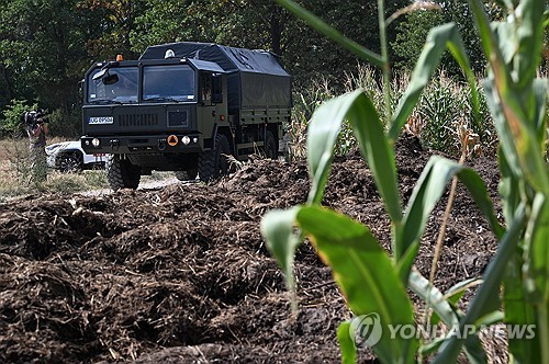 (베를린=연합뉴스) 김계연 특파원 = 폴란드의 농지에 드론(무인기)이 추락한 뒤 폭발했다. 폴란드는 러시아가 우크라이나 전쟁에 쓰는 군사용 드론이라고 주장했다.