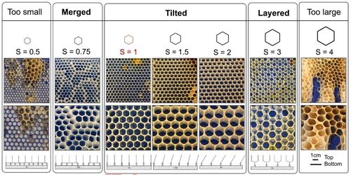◆ 출처 : PLOS Biology, Golnar Gharooni-Fard et al., 'Honeybees adapt to a range of comb cell sizes by merging, tilting, and layering their construction', http://dx.doi.org/10.1371/journal.pbio.3003253