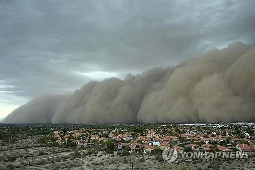 26일(현지시간) AP통신과 CNN 방송 등에 따르면 전날 저녁 애리조나주의 대도시 피닉스 일대에 '하부브'로 불리는 거대한 모래폭풍이 덮쳤다.