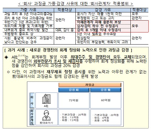 회계부정의 실질적 책임자에게도 과징금을 부과할 수 있도록 근거를 신설해, 전 경영진 등도 빠져나갈 수 없도록 했다.