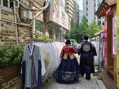 경복궁 인근 한복대여점서 'K갓' 인기…'케데헌' 배경지 방문도