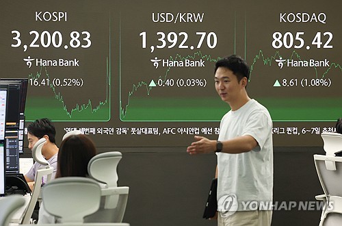 이날 코스피는 전장보다 16.41포인트(0.52%) 오른 3,200.83에 거래를 마쳤다.