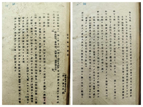 기록물에 따르면 일본은 괴뢰국 만주국을 통해 이른바 '군수물자징발령'을 공포함으로써 강제노동의 합법화를 시도했다. 이 법령은 일본군이 징집에 대한 최고 권한을 가지며 징집을 거부하는 자를 억압할 수 있는 권한도 부여했음을 명시적으로 규정했다.