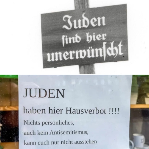 나치는 1933년 집권하자마자 공공장소에 '유대인 금지', '아리아인 전용' 등 표지판을 설치하고 유대인을 탄압했다. 론 프로소르 독일 주재 이스라엘 대사는 엑스(X·옛 트위터)에 "1930년대가 돌아왔다"며 "기독교인도 무슬림도 무신론자도 유대인도 다시는 그 가게에 가지 않길 바란다"고 적었다.