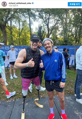 (서울=연합뉴스) 고일환 기자 = 영국 출신 팝스타 해리 스타일스(31)가 베를린 마라톤에서 3시간 이내에 42.195km를 완주하는 '서브쓰리'를 달성했다.