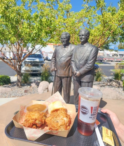 솔트레이크시티 외곽의 1호점은 파란 하늘 아래 빨강·흰색이 어우러진 간판과 치킨 컵 구조물, 그리고 샌더스 대령 동상으로 방문객을 맞는다. 관광객들은 동상 앞에서 기념사진을 찍고, 매장 내부에 전시된 창업자의 흑백 사진과 도전기를 보며 감탄을 쏟아낸다.