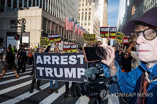 도널드 트럼프 미 대통령의 연설이 예정된 이날 오전 유엔총회장 인근 맨해튼 거리는 유엔본부 건물을 몇 개 블록 앞둔 지점부터 미 비밀경호국(SS) 요원들과 뉴욕경찰들로 가득 차 있었다.