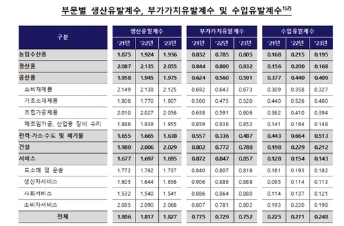 2023년 기준 부가가치 유발계수(0.752)는 전년(0.729)보다 올랐다. 부가가치율(부가가치/총산출액)이 40.1%에서 41.2%로 높아진 데 가장 큰 영향을 받았다.