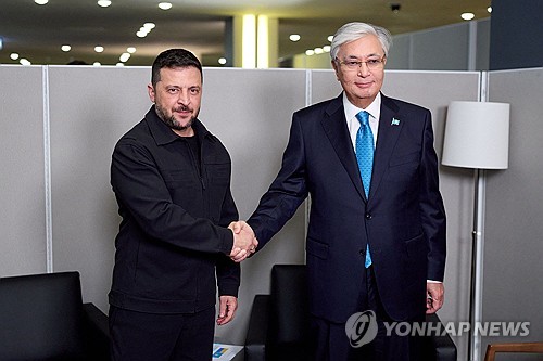 (서울=연합뉴스) 유창엽 기자 = 카심-조마르트 토카예프 카자흐스탄 대통령이 뉴욕 유엔 총회를 계기로 볼로디미르 젤렌스키 우크라이나 대통령을 만나 러시아와의 전쟁 종결을 위한 지속적인 외교 노력을 주문했다.