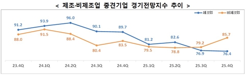 중견련 관계자는 "경기전망지수가 전분기 대비 상승했지만 여전히 100 미만으로 부정적 인식이 확인된다"면서 "특히 제조업 부문의 하락세는 미국 상호·품목 관세 정책의 부담과 불안이 반영된 것으로 보인다"고 분석했다.