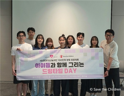 (서울=연합뉴스) 이상서 기자 = 국제 아동권리 비정부기구(NGO) 세이브더칠드런과 HD현대1%나눔재단은 '100인의 부모 프로젝트' 사업의 일환으로 복합위기가정 아이들과 함께하는 임직원 참여 활동을 진행했다고 1일 밝혔다.