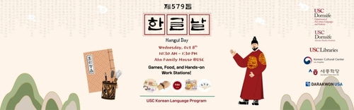이어 8일에는 USC 한국학 연구소에서 이 대학의 한국어 수강생들이 '한국어를 배우는 이유', '내가 좋아하는 한국 문화와 한국어 학습 과정' 등을 주제로 제작한 동영상을 발표한다. 또 한글 이름 배지 제작, 자음·모음 팔찌 만들기 등 한글문화 참여 행사와 함께 한식·한복 등 다양한 한국문화 체험 행사도 열린다.