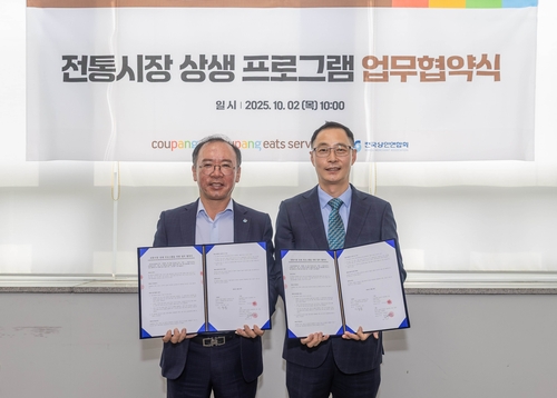 (서울=연합뉴스) 신선미 기자 = 쿠팡과 쿠팡이츠서비스(CES)는 전국상인연합회와 상생협약을 맺고 전통시장의 디지털 전환을 지원한다고 2일 밝혔다.