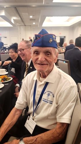 4일(현지시간) 밤 동원그룹 계열사인 스타키스트가 버지니아주 알링턴의 한 호텔에서 개최한 장진호 전투 참전용사 및 후손 초청 연례 만찬 행사에서다. 참전용사들이 매년 세상을 떠나고 있는 가운데, 이날 직접 참석한 참전용사는 13명으로 작년의 절반을 조금 넘는 수준이었다.