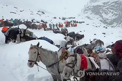 전날 중국 시짱(티베트)자치구에 속한 에베레스트산 동쪽 경사면 근처에서도 등반객 수백 명이 고립됐다가 이 중 약 350명이 구조대원들의 도움을 받아 근처의 작은 마을인 쿠당(曲?)으로 대피했다고 중국중앙TV(CCTV)가 전했다.