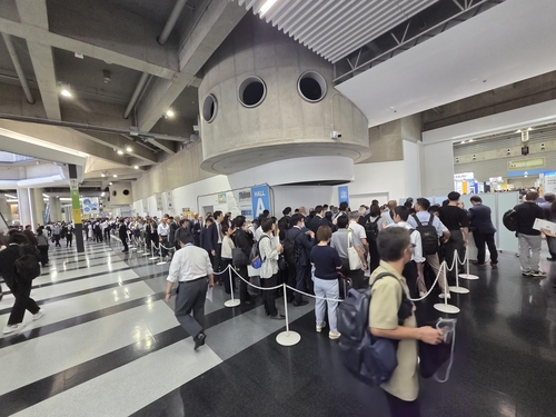 이날 오전 9시 50분께 찾은 퍼시피코 요코하마 1층 전시공간 입구는 개막 10분 전이었지만 관람객들이 긴 줄을 서 있었다.