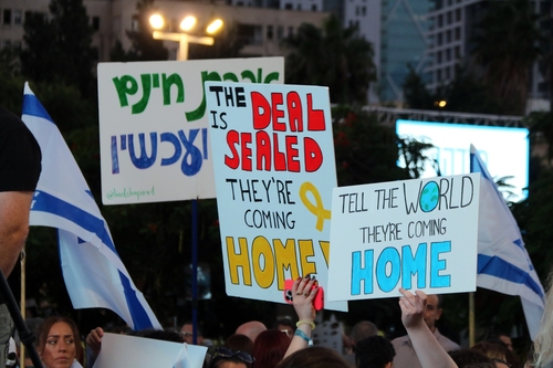 전쟁 발발 때부터 인질 납치 시간을 세고 있는 광장 한 켠의 대형 시계는 735일 14시간을 지나고 있었다. 약속대로 휴전 합의가 이행돼 인질들이 풀려나게 된다면 737일, 혹은 738일로 이 시계도 멈추게 될 것이다.