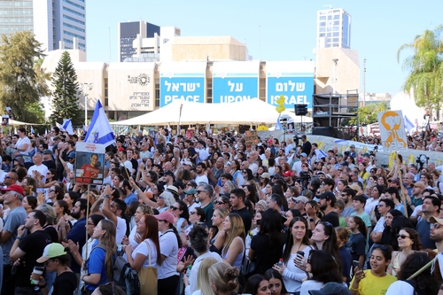 시민들은 유대교 명절 수코트(초막절) 첫날인데도 불구하고 이른 새벽부터 광장에 운집해 흰색과 파란색의 이스라엘 국기, 노란색 리본과 풍선 등을 흔들며 자국민의 귀환과 전쟁 종식에 대한 기대를 표출했다.