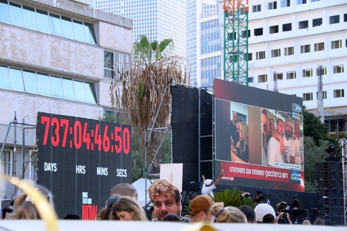 광장 스크린에 뜬 영상에서 인질 에비아타르 다비드의 부친 아비샤이는 아들과 짧은 통화를 마친 뒤 "어서 아들을 껴안고, 냄새를 맡고, 함께 숨쉬기를 기다리고 있다"고 말했다.