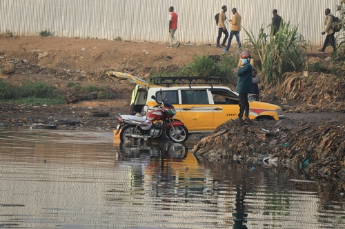 민주콩고 수도 킨샤사에서는 현재 도로 정비가 이뤄졌지만, 과거에는 시내와 국제공항을 연결하는 도로가 비포장이었다. 비가 조금만 내려도 쉽게 침수돼 차량 통행이 불가능했다. 그 결과 공항으로 향하는 사람들은 도로가 잠기면 차량을 이용하지 못하고 재래식 화장실 오물이 뒤섞인 도로 위를 여행 가방을 머리에 인 채 걸어가야 했다.