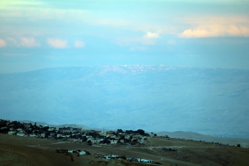 이 표지판 앞에 서니 언덕 아래로 건물이나 나무가 하나도 없어 동쪽 유대광야의 요르단계곡까지 시야가 탁 트였다. 높게 솟은 산봉우리들 뒤로 50㎞쯤 지점에 위치한 요르단 살트 마을까지 희미하게 보일 정도였다.