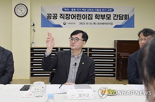 (세종=연합뉴스) 이준서 기자 = 임기근 기획재정부 2차관은 16일 서울 금천구 소재 근로복지공단 직영 '모아래 어린이집'을 방문해 공공돌봄 현장을 점검했다.