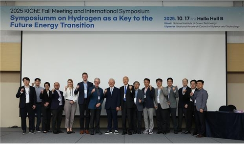 ▲ 국가녹색기술연구소는 17일 제주 국제컨벤션센터에서 열린 한국화학공학회 추계 학술대회 특별 세션에서 '수소로 여는 에너지 전환의 미래'를 주제로 국제 심포지엄을 열었다고 밝혔다. 행사에는 글로벌 수소 공급망 및 생태계 구축, 산업계 상용화 성과와 도전, 학계 기술 성과와 미래 전망 등을 주제로 세부 세션이 진행됐으며 국내외 산학연 관계자 100여 명이 참석했다. (서울=연합뉴스)