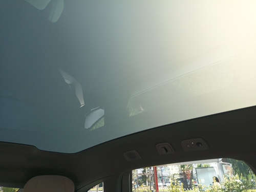 천장을 거의 다 차지하는 파노라믹 루프 덕에 차 내부가 더 넓고 화사해 보였다. 기본적으로 투명한 창 형태지만 남프랑스의 햇볕이 너무 강하게 내리쬘 때는 버튼을 눌러 투명도를 낮출 수 있었다. 자외선은 99.9% 차단하는 소재로 돼 있어 차에 오래 타고 있어도 피부가 자극되지는 않았다.