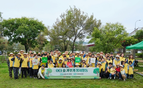 ▲ OCI홀딩스는 ESG(환경·사회·지배구조) 경영활동의 일환으로 지난 3년간 진행한 'OCI 숲' 조성 캠페인이 성공적으로 마무리됐다고 20일 밝혔다. OCI홀딩스는 2023년부터 임직원 가족이 참여해 나무를 심는 캠페인을 열었으며, 그 결과 한강대교 북단 우측에 있는 3천㎡ 규모의 공터에 1만그루 이상의 숲을 조성했다. OCI홀딩스는 "글로벌 신재생에너지 기업 이념에 부합하는 지속적인 ESG 활동을 통해 생태계 보호와 탄소중립 실천에 기여하겠다"고 말했다. (서울=연합뉴스)