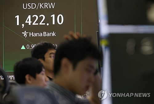 이날 서울 외환시장에서 미국 달러화 대비 원화 환율은 오전 9시 10분 현재 전 거래일 주간 거래 종가(오후 3시 30분 기준)보다 1.4원 오른 1,420.6원에 거래됐다.