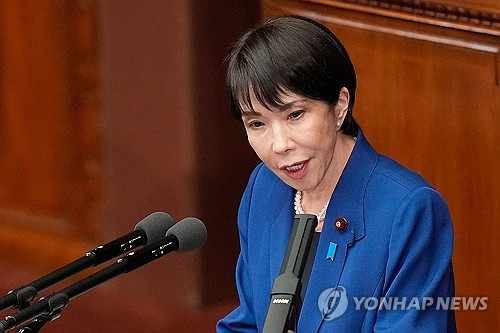 (도쿄=연합뉴스) 박상현 특파원 = 다카이치 사나에 일본 총리가 24일 첫 국회 연설에서 "중요한 이웃 나라인 한국과는 정상 간 대화를 통해 관계 강화를 모색할 것"이라고 밝혔다.